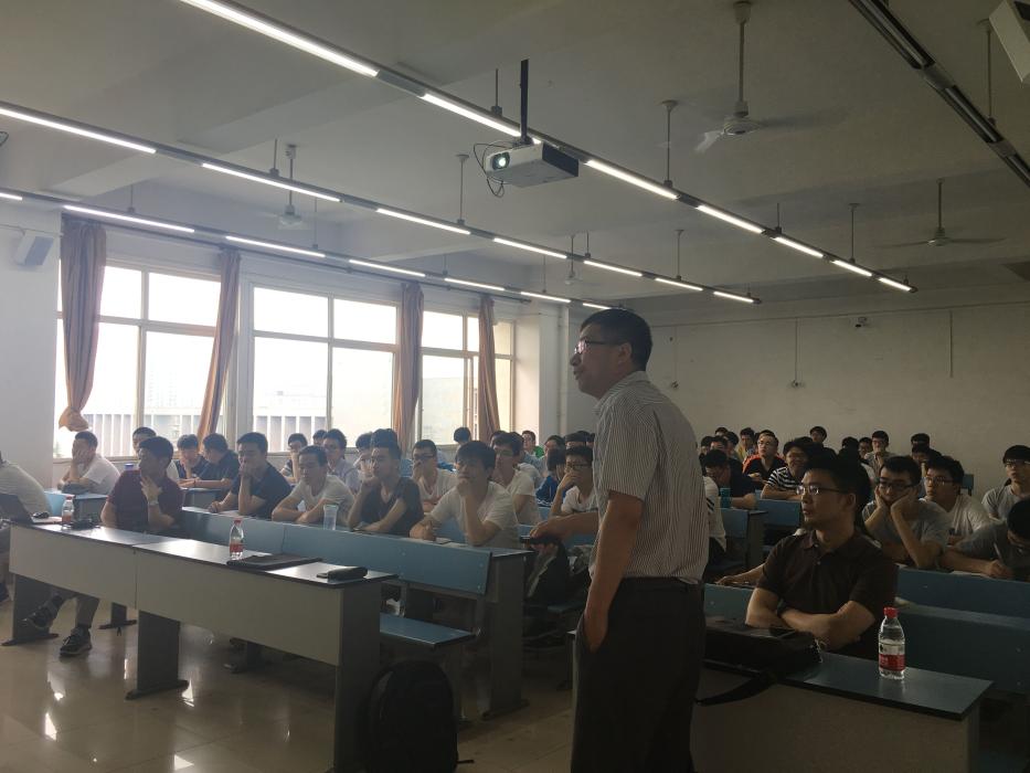 在短暂的休息之后,陈伟球教授向同学们作浙江大学力学学科相关的讲座。陈伟球教授以浙江大学力学学科的历史讲起,介绍了浙大力学的发展。而后介绍了浙大力学学科优秀的团队队伍与研究资源,同时向同学们讲述了人才培养相关的情况,不仅有优秀的团队水平,还有优秀的教材与各方面的资源,毕业生的就业与去向情况良好。再接着,陈老师详述了浙大力学相关科学研究的方向:如微纳米力学、非线性与随机控制、多相流与湍流、水动力学、软物质科学、生物与仿生力学和无人机等。进而是浙大力学在社会服务方面的成果,以及在国际交流方面,与国外各知名高校的交流合作情况。