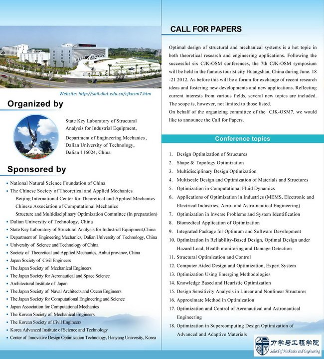 第七届中日韩结构和机械系统优化会议第一轮(征稿)通知