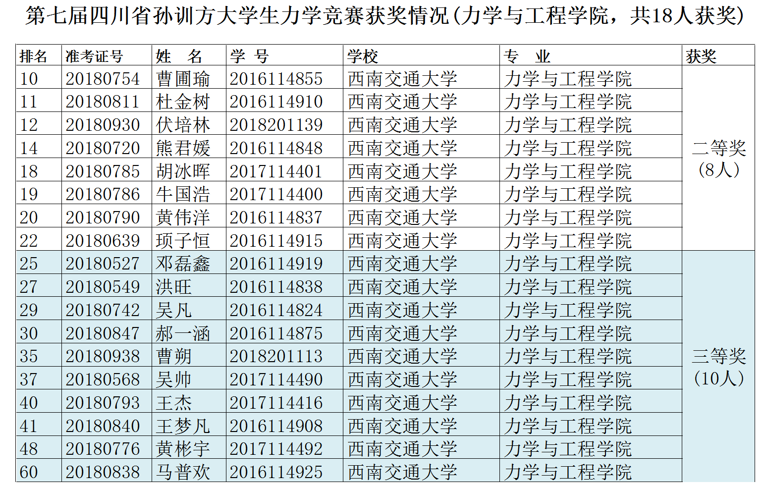 本次力学竞赛的圆满举行,充分激发了同学们学习基础力学的兴趣,使同学们在理论学习的同时也锻炼了力学基础课程的应用能力。再此祝贺本次力学竞赛获奖的同学。同时也希望获奖同学再接再厉,认真准备明年五月份的第十二届全国周培源老员工力学竞赛,再创佳绩!