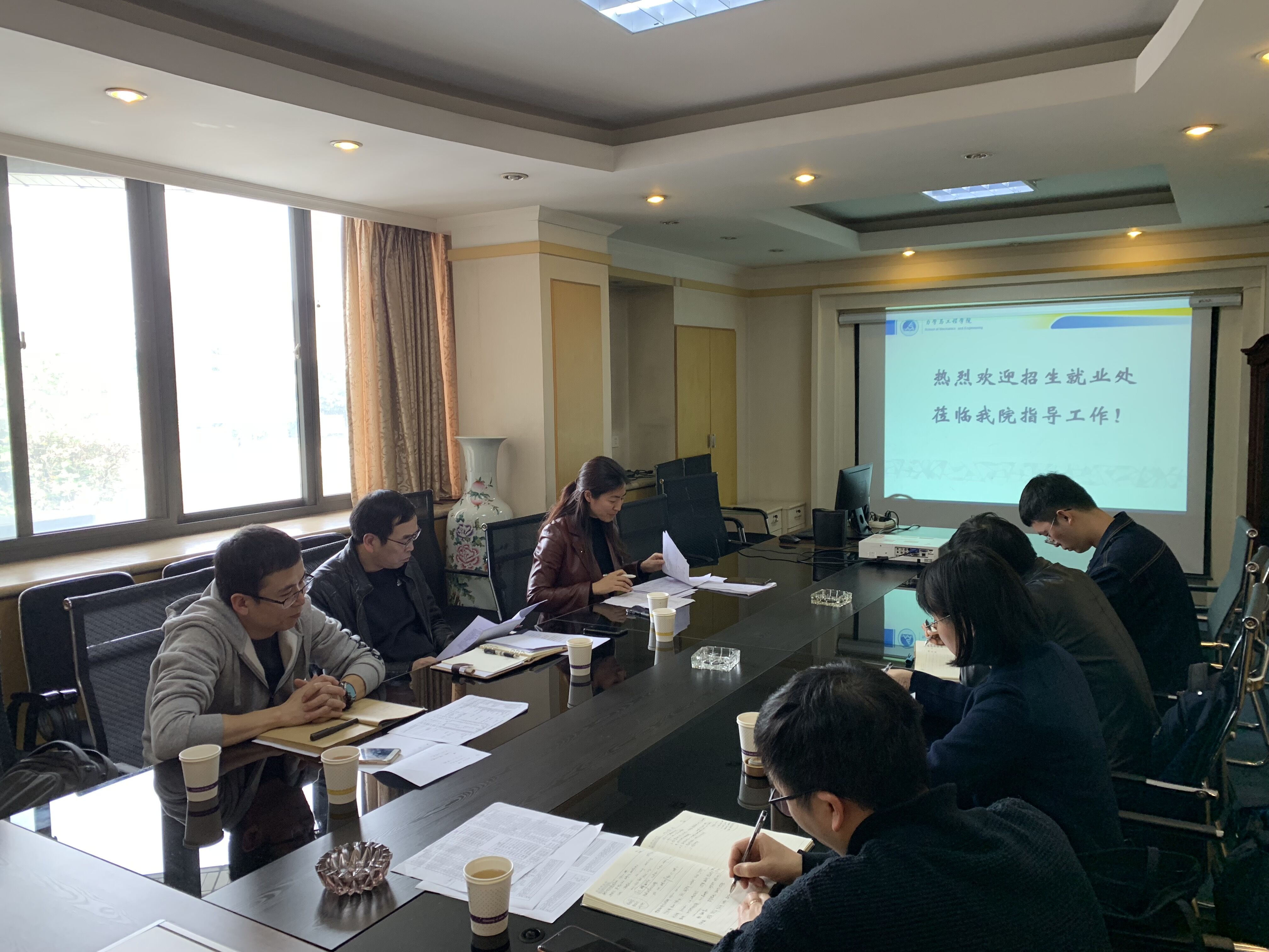 首先,陈岩峰处长表示本次调研的主要目的是了解学院人才招聘相关工作情况,对实际工作中存在的问题进行探讨。陈处长还表示,学院要在目前高升学率优势的基础上,进一步提升国内深造率和出国率,同时优化毕业生就业结构。
