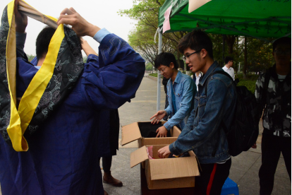 为确保整个拍摄活动的顺利进行,前期,学院学工组制定了详细的工作方案。18日、19日的上午7点,力学学院九里校区、犀浦校区的工作人员与志愿者同学们一起,开始搭建场地、准备学位服等物品,上午八点,拍摄活动正式开始。工作人员热情为每一位同学发放学位服,并细心帮助他们整理好帽子、流苏,按照顺序依次上前拍照,他们脸上的表情或灿烂、或严肃、或拘谨,快门按下的那一刻都被连同阳光一起定格在这“菁华岁月”。