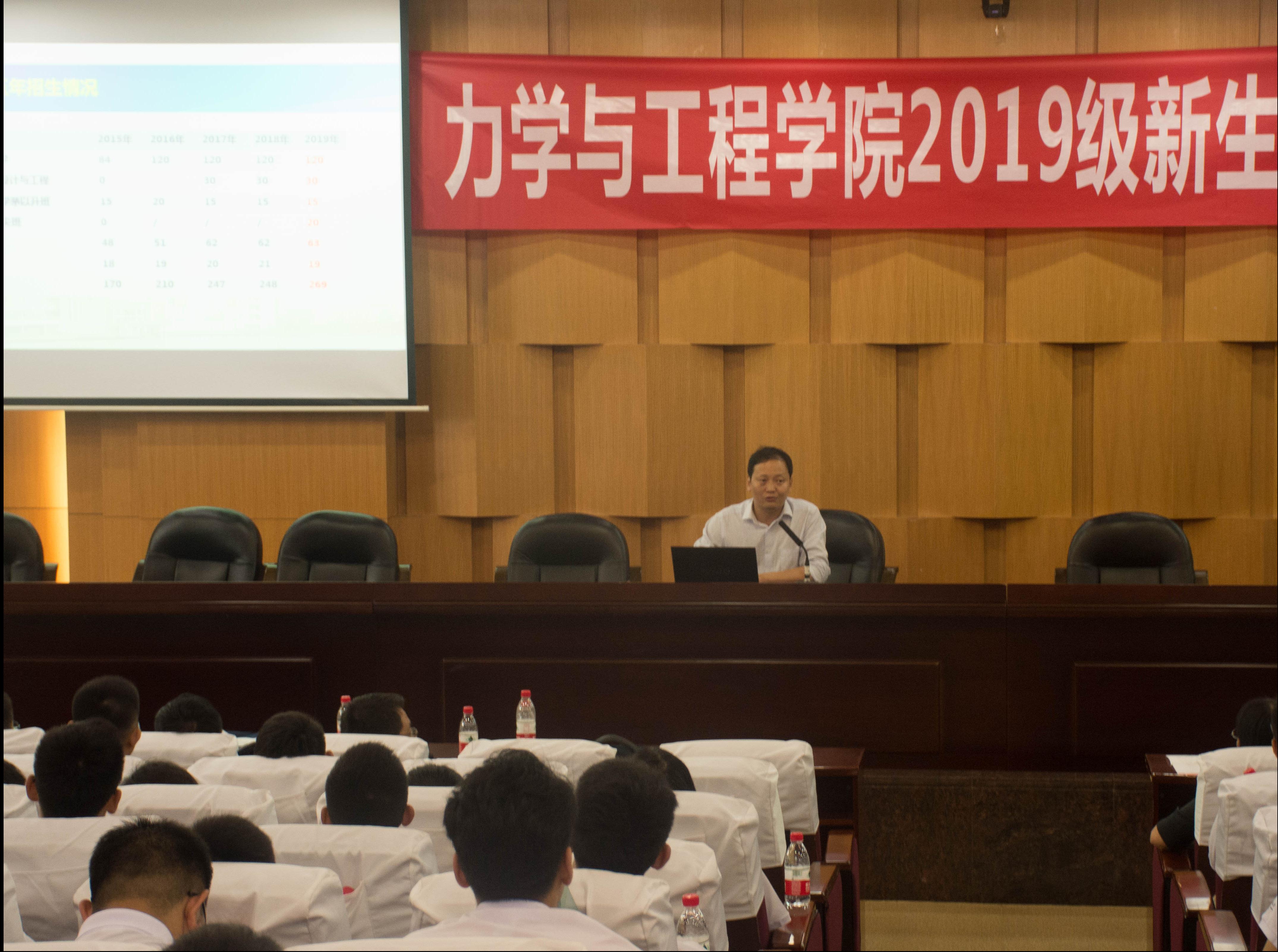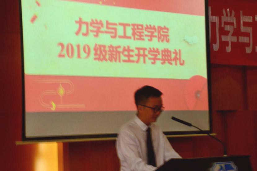 接下来,学院副经理、研究生导师代表阚前华教授为大家介绍了学院的团队、专业设置、人才招聘等基本情况。阚老师希望2019级新同学可以坚定自己的目标,学好专业知识,增长专业才干,提升综合素质,成为一名优秀的力学人!