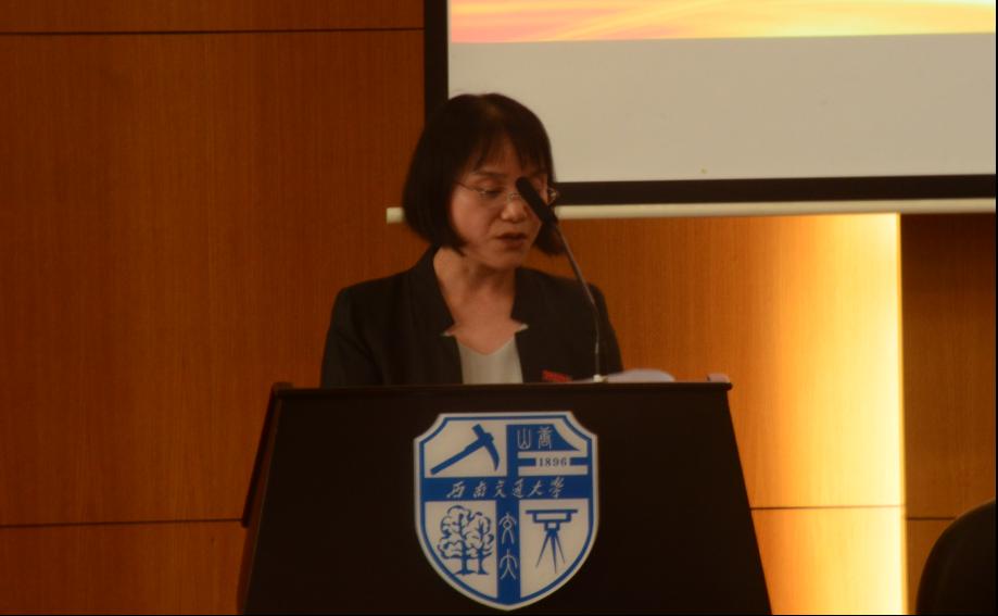 全体奏唱国歌后,栗民书记代表学院致辞。栗书记首先对各位同学表达了热烈的欢迎,她鼓励同学们在老员工活中多看、多想、多学,体会钻研的乐趣,同时,在大学中充分发挥自己的才干,勇担责任,将来为建设更好、更强大的祖国贡献出自己的力量。